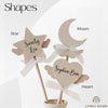 Capture the sweetest moments with our handcrafted Personalized Wooden Baby Name Props - the perfect touch for newborn photography, birth announcements, and baby showers. Each piece is custom-made with your chosen name, date, or message engraved on whimsical shapes like stars, moons, and hearts.