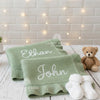 Wrap your little one in comfort and love with our beautifully personalized knitted baby blanket. With a delicate ruffled edge and your baby's name custom embroidered, this cozy cotton blanket is perfect for nap time, stroller walks, nursery cuddles, or a timeless keepsake ๐Ÿ’•